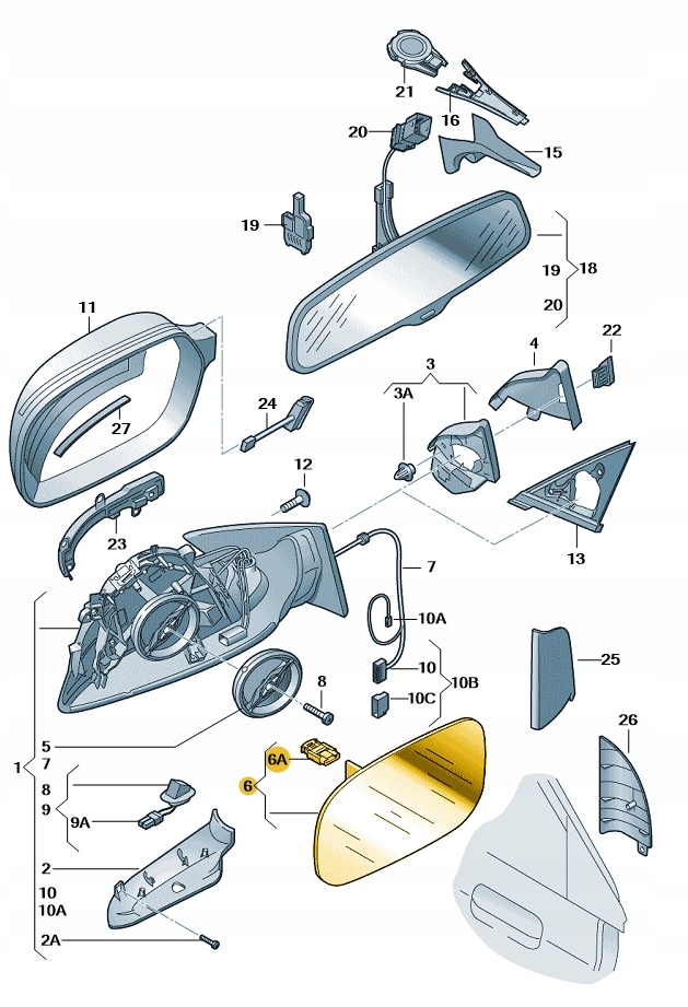 Audi OE speilglass asfærisk med hjørne – høyre (passasjerside) 8K0857536G