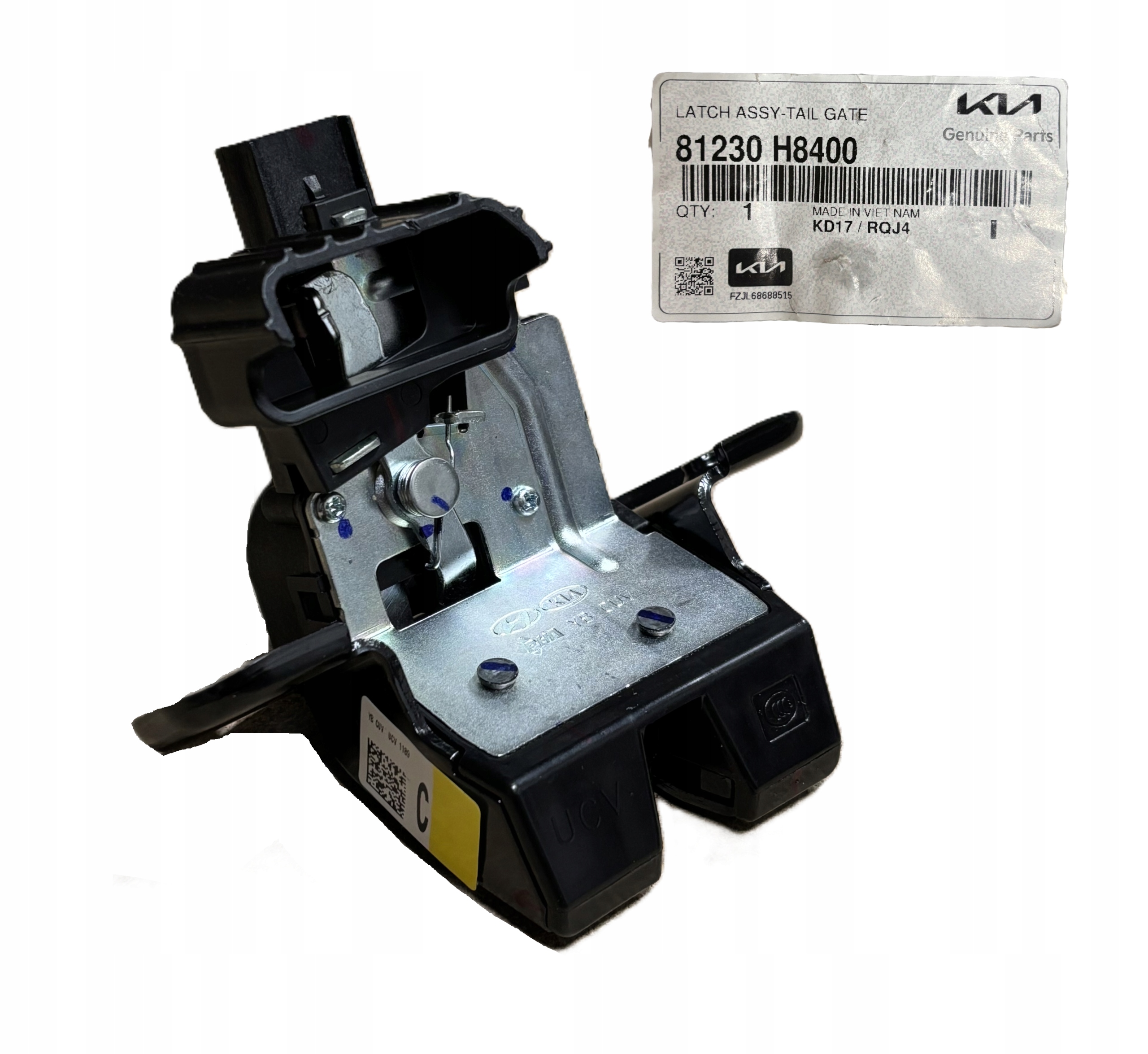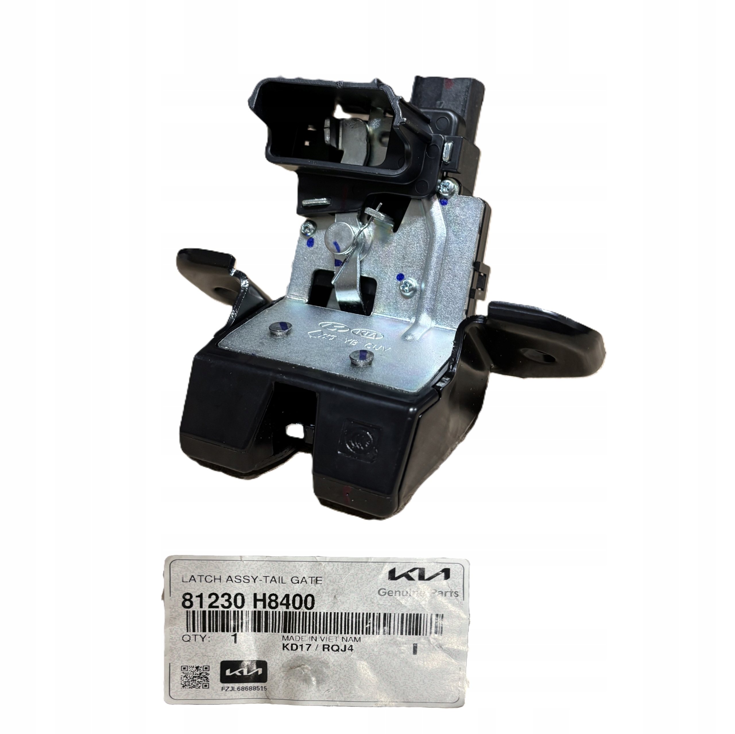 Original lås til bakluke/bagasjelokk med delenummer OE 81230-H8400, beregnet for Kia Stonic (fra 2017). Del fra original KIA-distribusjon for korrekt passform og enkel montering.