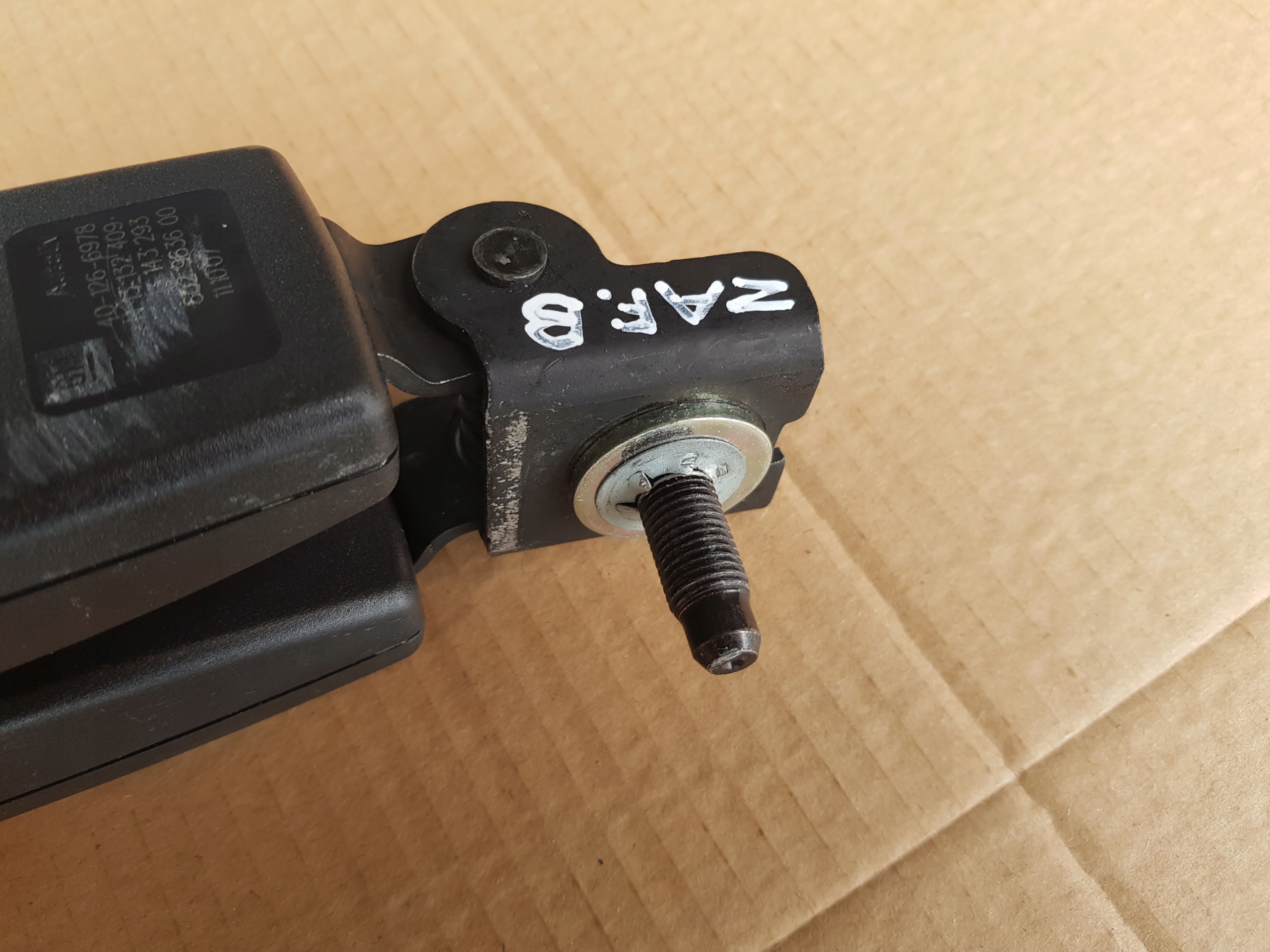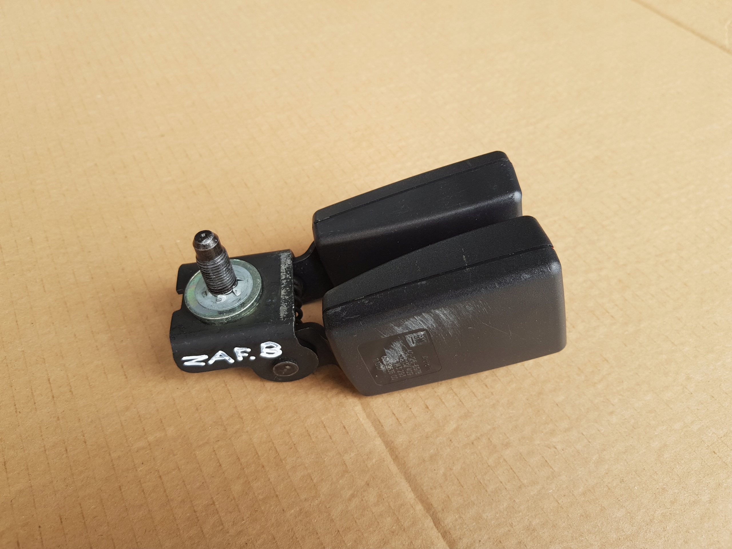 Setebeltelåser for de bakre setene (3. rad). Originale GM/Opel-deler, klare til montering.