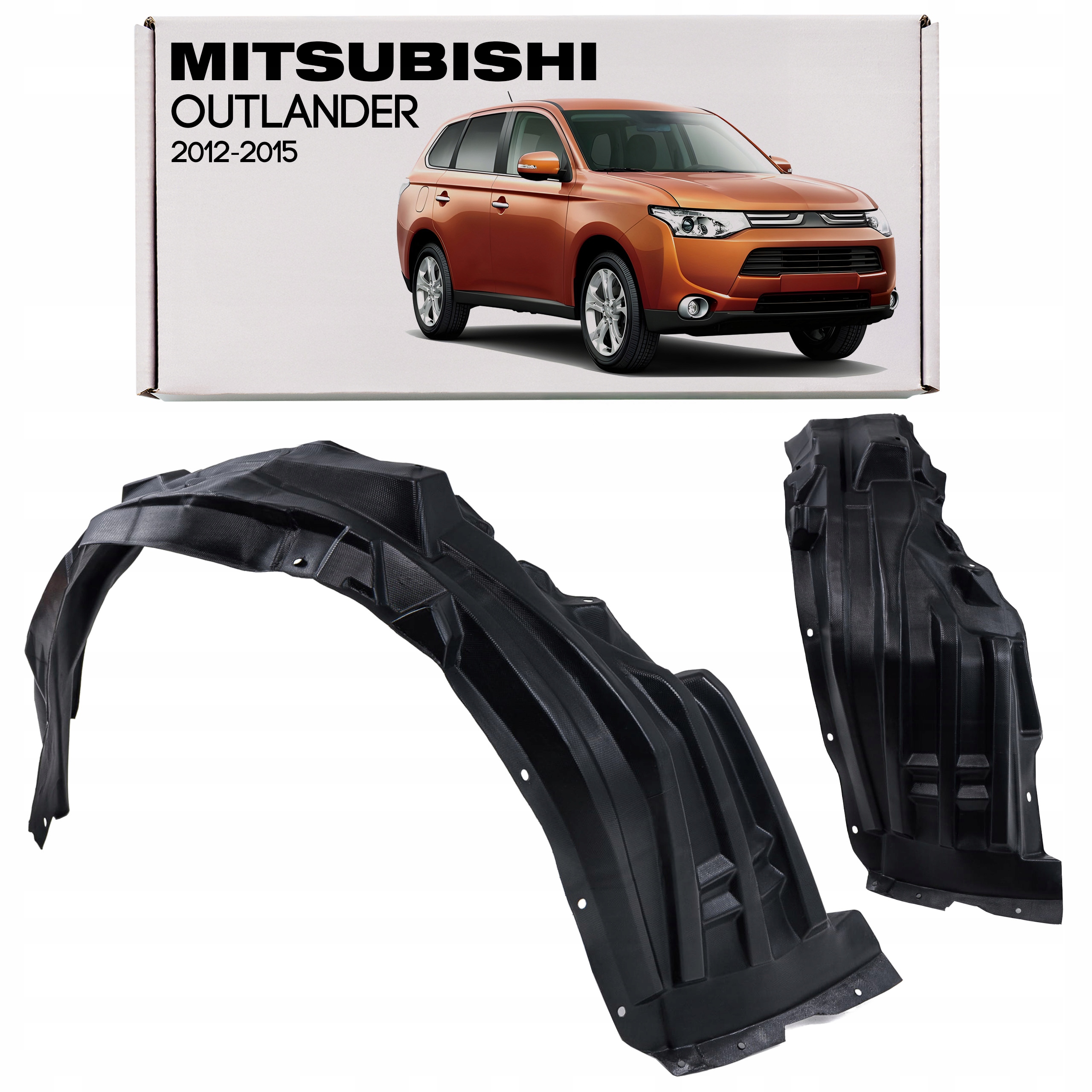Beskrivelse: Høyre fremre innerskjerm (hjulbue/innerskjerm) for Mitsubishi Outlander III (GF), modellår 2012–2015, versjon før facelift.