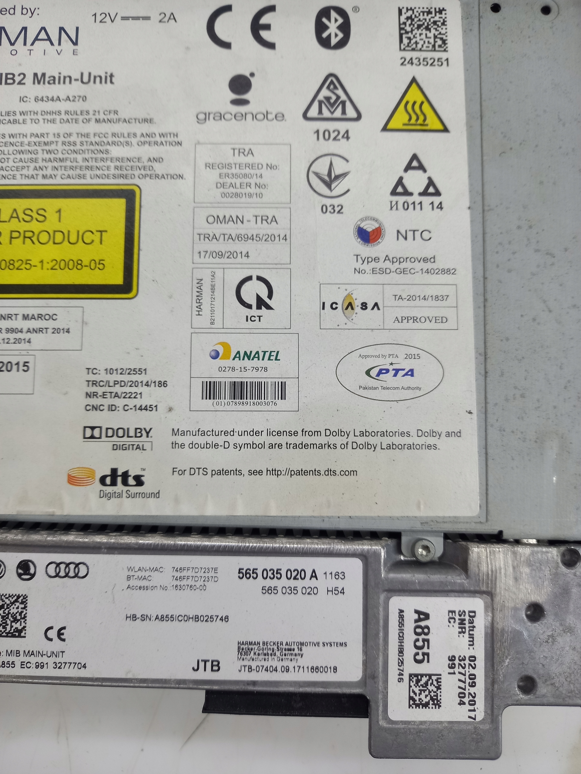 Navigasjons styreenhet SKODA SUPERB III 565035020A