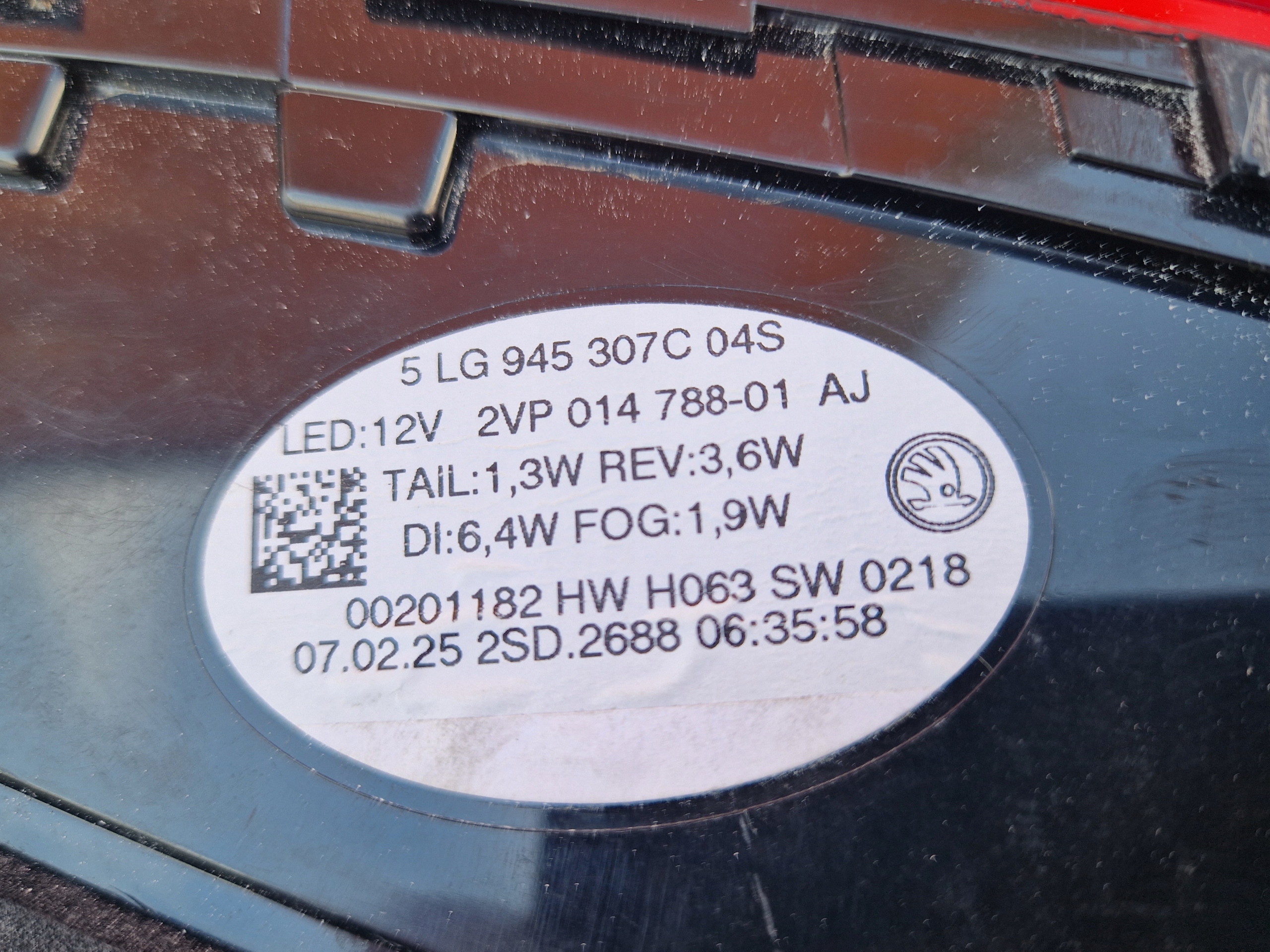 Ny, original baklampe for Skoda Enyaq — venstre side, innvendig for bakluke (bagasjelokket).